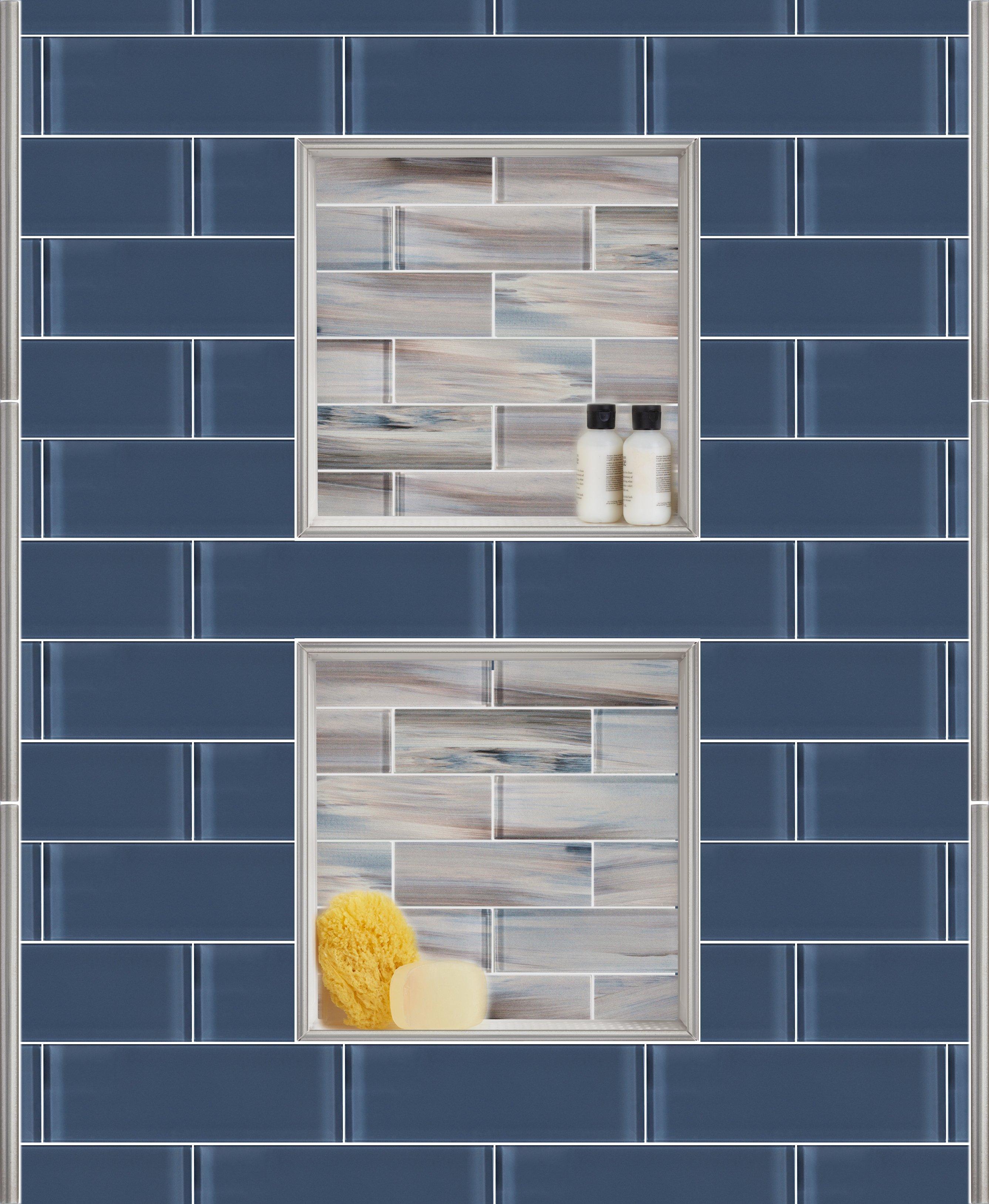 6 Tile Shower Niche Questions Answered By Experts from cdn.shopify.com Water should drain out of the niche onto tile, not onto a grout joint. By making the sill stick out by 1/16 he'll make the pencil tile hang out over the main tile by the same distance. Off center to the left. When you put a tile on the back of it, the depth of the tile with the thin set, + a grout line + 3 bullnose on the inside should cover the niche edges. To clarify, outside tile corner trims used exclusively for the corner where two of your tiled surfaces meet at 90 degrees. Many tile lines offer a bullnose tile as a trim option. It also can add some interest to those plain yet wide shower walls. A field tile edge looks unfinished, while a bullnose is glazed to match.